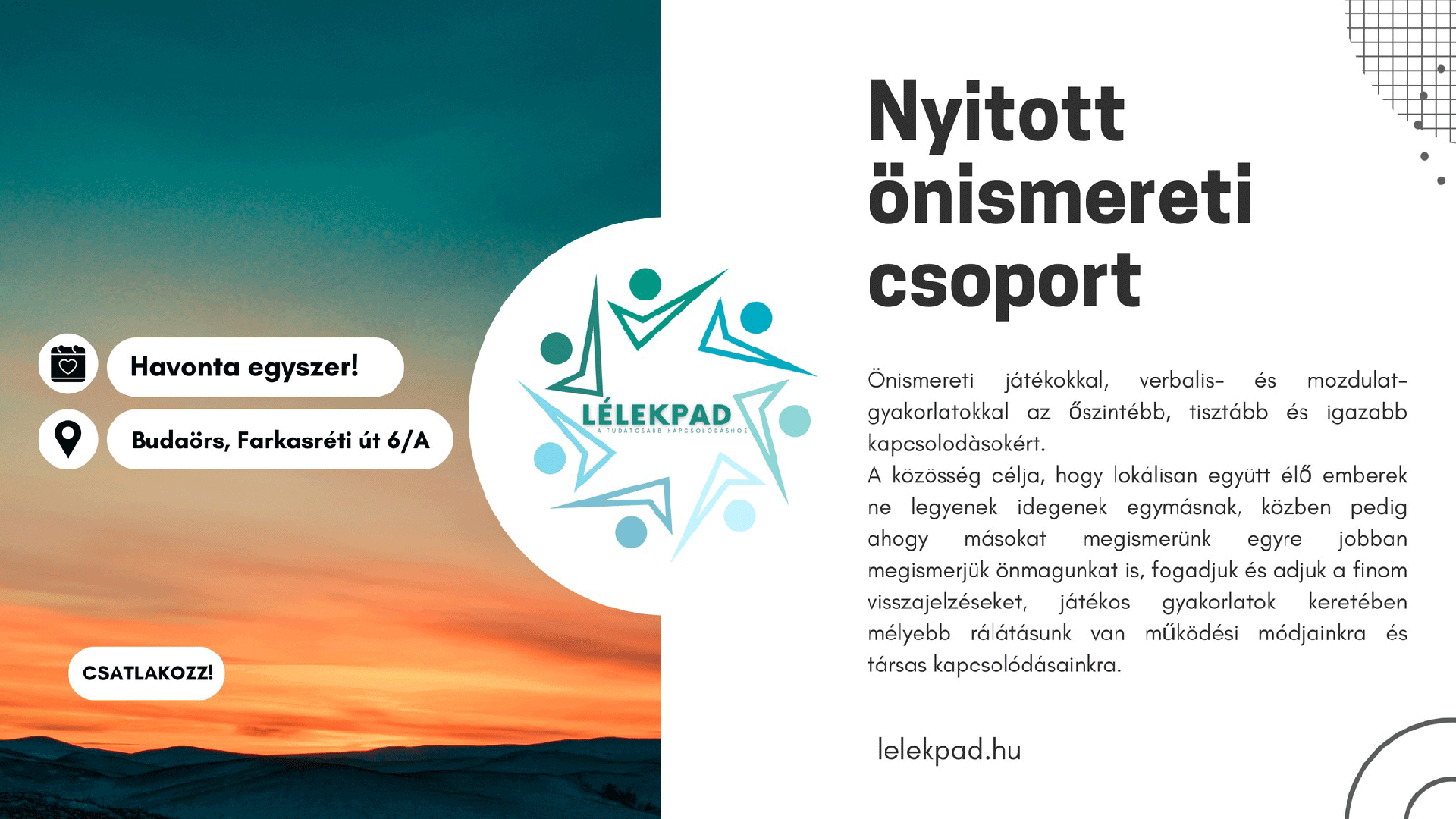 2025. június 1-én valóra vált a harmadik álom! Elindult a LÉLEKPAD – Nyitott önismereti csoport Budaörsön!